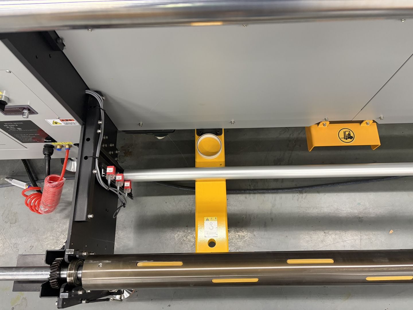Модульная система столов позволяет легко переналадить принтер под работу с листовыми материалами: столы подкатываются к станку и фиксируются, обеспечивая гибкость производства.