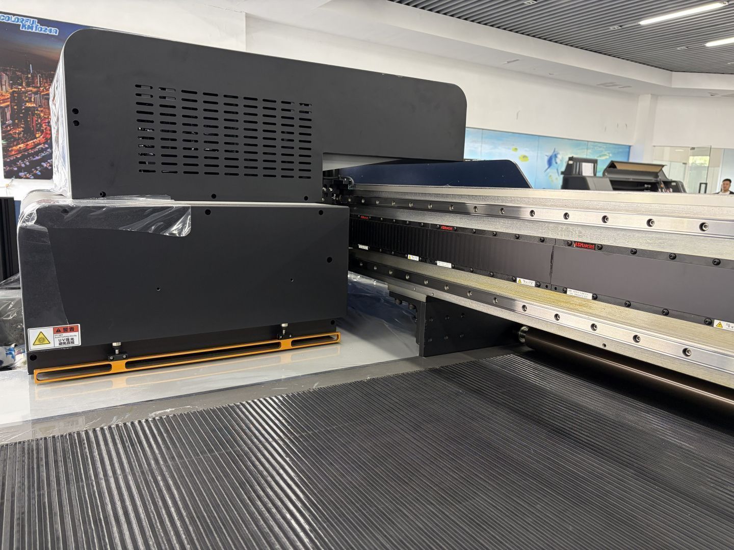 Сочетание линейного двигателя Maglev и голов KM9888H обеспечивает скорость до 158 м²/ч в 4 прохода в режиме CMYK при сохранении детализации отпечатка. Это позволяет выполнять срочные крупные заказы без ущерба для качества готовой продукции.