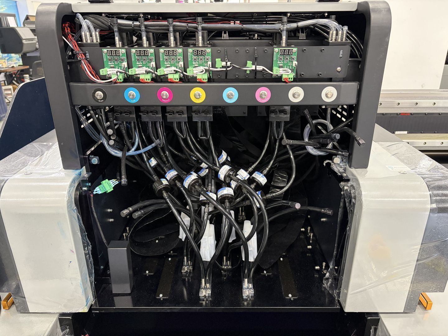 Вакуумная система непрерывной подачи чернил (СНПЧ) со вспомогательным резервуаром и точным контролем нагрева обеспечивает стабильный поток без завоздушивания, снижает расход чернил и облегчает техническое обслуживание принтера.