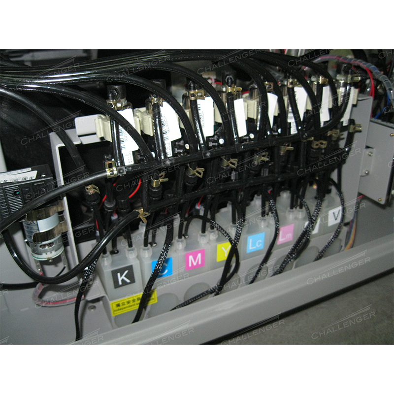 7) Поканальная чистка печатающих голов. Обеспечена возможность очистки каждого цветового канала отдельно, что устраняет необходимость в полной промывке всей печатающей головы. Такое решение значительно экономит расход чернил и упрощает техническое обслуживание станка.