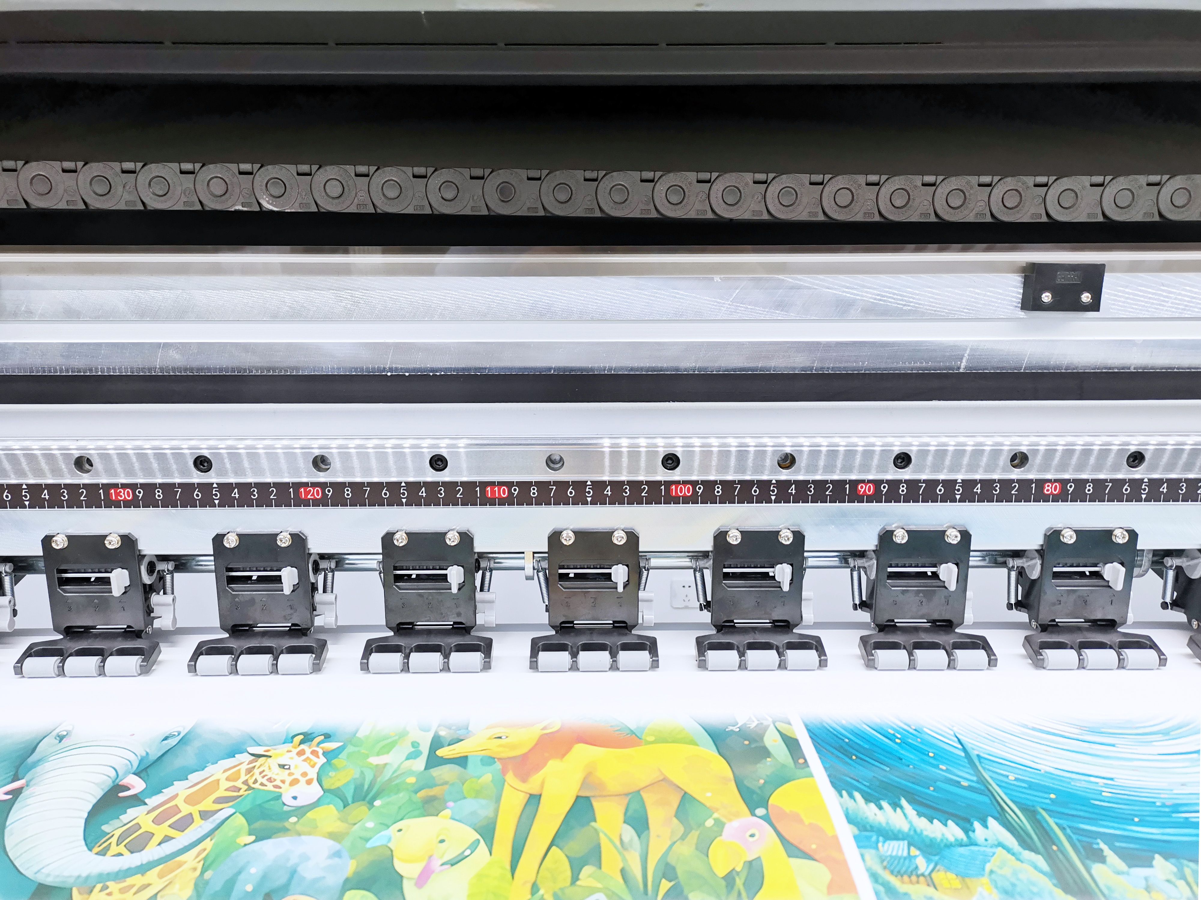 Принтер позволяет наносить печать на материалах шириной до 3,2 м – это позволяет закрыть большинство потребностей для интерьерной УФ-печати и наносить изображения на различные типы материалов (пленка, баннер, бумага, ткани и другие рулонные материалы).