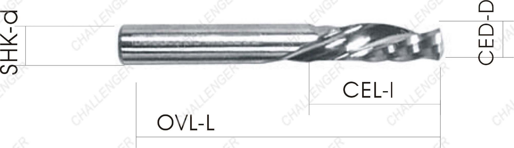 Форма инструмента позволяет прижать материал к рабочему столу станка и получить чистую кромку вверху заготовки благодаря отводу стружки вниз. Длинная канавка позволяет получать длинную стружку, которую удобнее утилизировать по сравнению с мелкой стружкой. Инструмент не засоряется и работает стабильно в процессе раскроя, сверления и черновой 3D обработки.